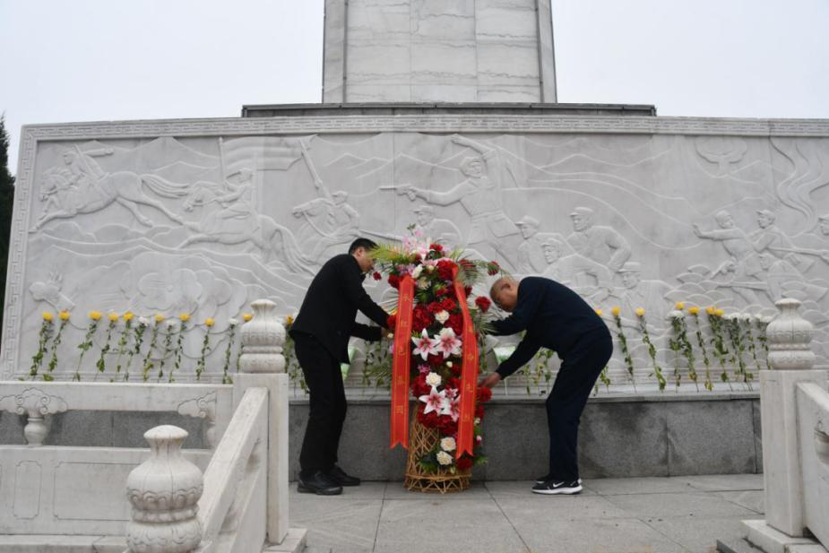 2.向革命烈士敬獻(xiàn)花籃。隨后進(jìn)行了向新中國(guó)成立英勇獻(xiàn)身的革命烈士敬獻(xiàn)花籃儀式。全體黨員、入黨積極分子莊嚴(yán)肅立,依次進(jìn)行了湊唱國(guó)歌、向烈士致敬、默哀,敬獻(xiàn)花籃,向町店戰(zhàn)斗烈士紀(jì)念碑行鞠躬禮等。高高聳立的烈士紀(jì)念碑,將永遠(yuǎn)銘記著我們對(duì)革命烈士的思念和緬懷,引領(lǐng)我們踏著革命烈士的足跡奮勇前行。